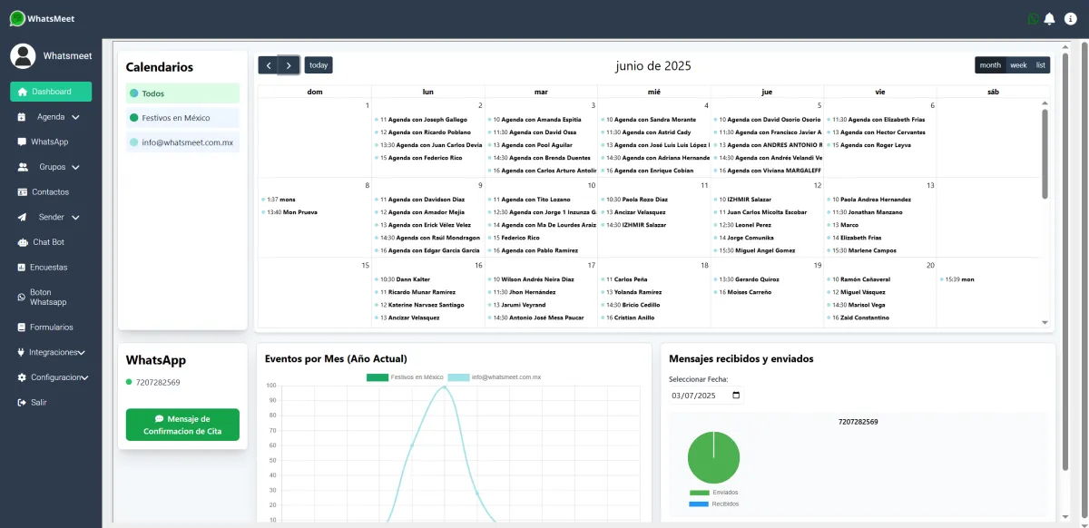 ✔️ Estadísticas: citas mensuales, mensajes WA, pagos